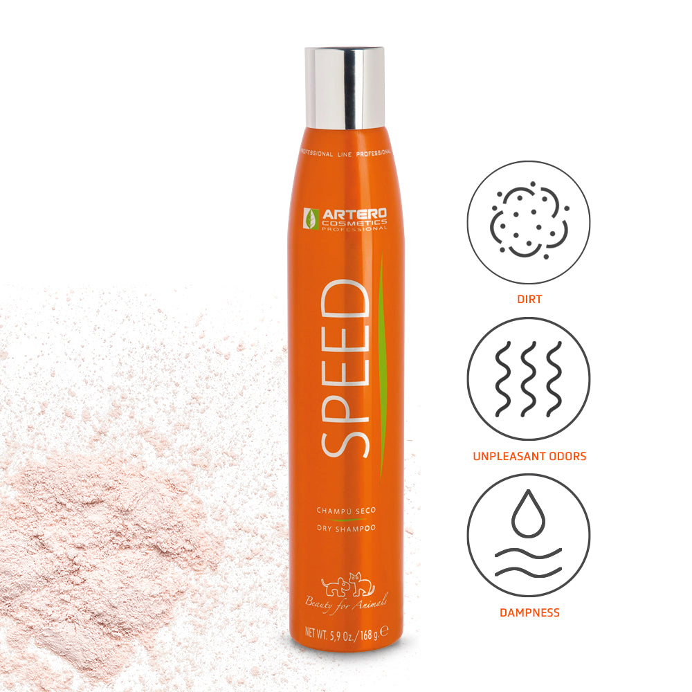 Spray generously onto the coat from a distance of 50 cm, then brush to remove the talc and dirt.Dry shampoo for dogs and cats in aerosol form.